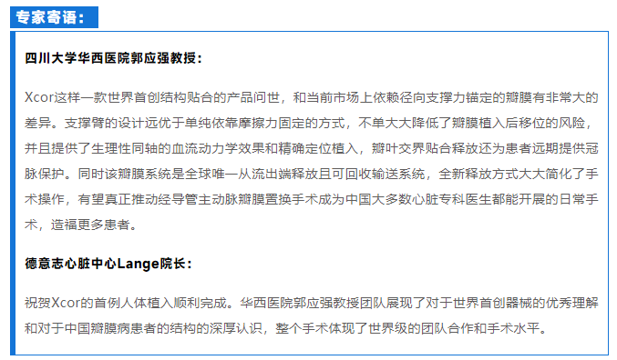 2022年5月20日,四川大學華西醫(yī)院郭應強教授團隊成功應用南京圣德醫(yī)療科技有限公司研制的帶結構貼合錨定及全新釋放方式的自膨式TAVR產(chǎn)品Xcor,為一位外科高危高齡重度主動脈瓣狹窄合并中度關閉不全患者實施了經(jīng)導管主動脈瓣膜置換手術。該例手術也標志著,由四川大學華西醫(yī)院郭應強教授牽頭的全國多中心研究正式起航。