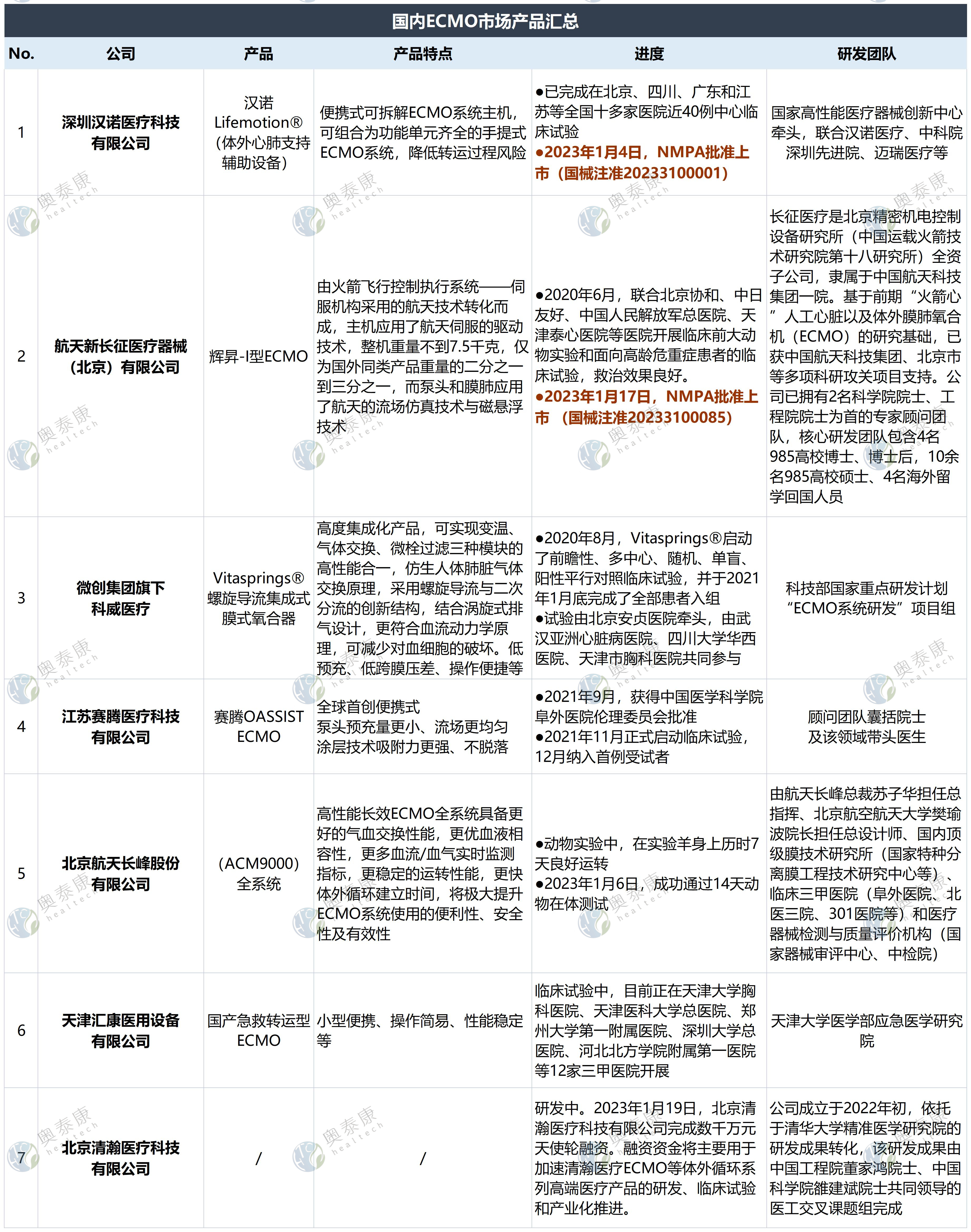 國內(nèi)ECMO產(chǎn)品研發(fā)進(jìn)度