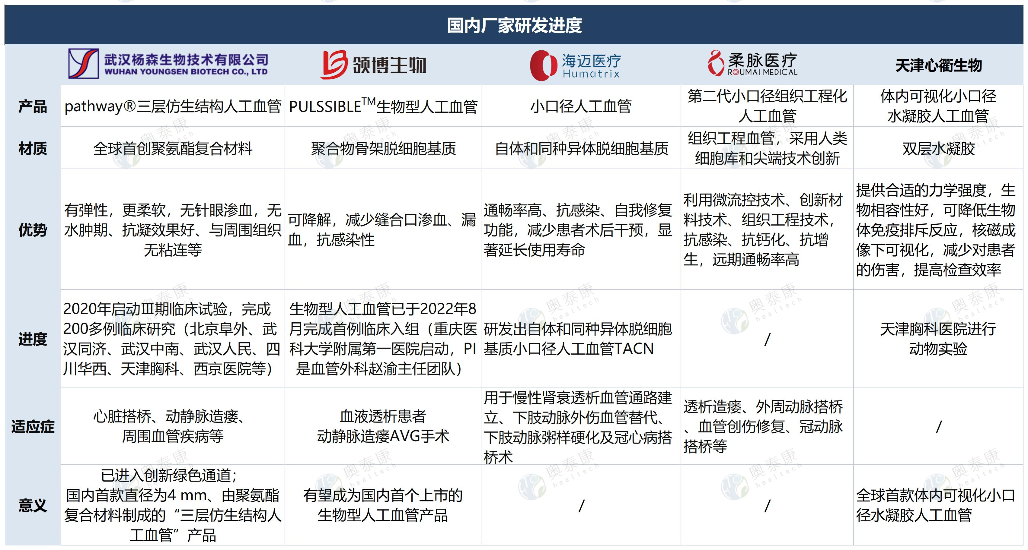 △國(guó)內(nèi)小口徑人工血管廠家研發(fā)進(jìn)度