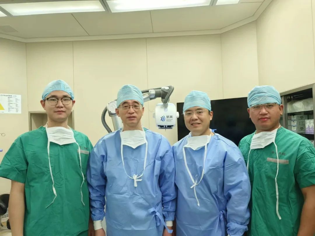 ▲華山醫(yī)院吳文育主任(左二)與醫(yī)護(hù)團(tuán)隊(duì)手術(shù)成功后留影