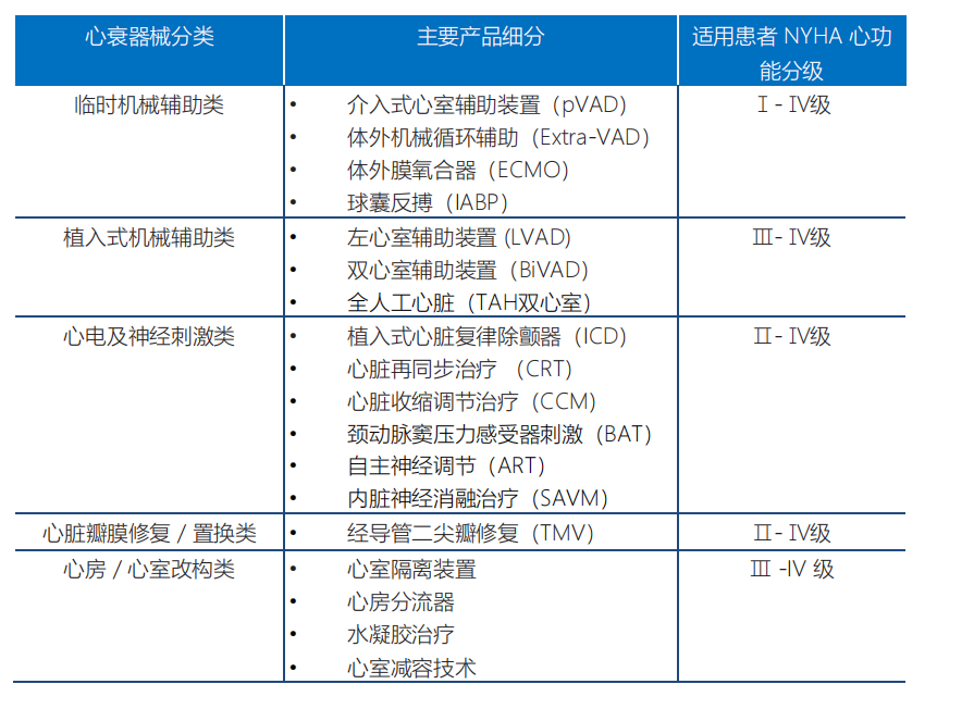 市面上現(xiàn)有的心衰器械可分為三大類(lèi)