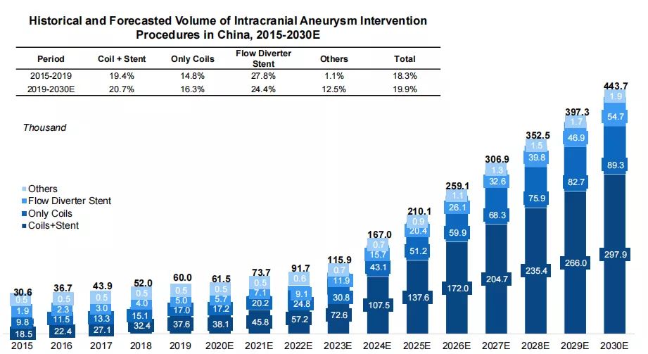 相較于歐美人群,我國顱內(nèi)動脈瘤普遍呈現(xiàn)“瘤體小、載瘤動脈管徑細(xì)”的特點(diǎn),但目前市場上的的動脈瘤栓塞彈簧圈仍以進(jìn)口產(chǎn)品為主,國產(chǎn)替代率尚不足10%,亟需一款適合國人的超柔軟彈簧圈。通橋鳳彈簧圈的上市,填補(bǔ)了這一市場空白。通橋鳳彈簧圈圈體更柔軟,推送系統(tǒng)更柔順,能更好地順應(yīng)瘤體形態(tài),提高手術(shù)安全性和栓塞效果。 同時,通橋鳳彈簧圈采用了機(jī)械解脫的結(jié)構(gòu),與電解脫和水解脫方式相比,解脫過程簡單快速、安全可靠,術(shù)者只需“一折一拉”,即刻解脫,平均解脫時間小于1秒。 在型號方面,通橋鳳彈簧圈系統(tǒng)擁有十分齊全的規(guī)格型號,包括6個1mm型號,可以覆蓋多數(shù)復(fù)雜病變,為小動脈瘤栓塞提供更多選擇,為患者和醫(yī)生提供全方位栓塞治療方案。 隨著中國人口老齡化的加劇及國內(nèi)神經(jīng)介入技術(shù)的快速發(fā)展,我國的神經(jīng)介入醫(yī)療器械市場快速增長?!吨袊X卒中防治報告(2020)》指出,我國顱內(nèi)動脈瘤的檢出率高達(dá)7%,且呈現(xiàn)逐年上升趨勢。根據(jù)弗若斯特沙利文分析,中國顱內(nèi)動脈瘤介入手術(shù)量由2018年的5.2萬臺到2021年7.37萬臺,到2030年將進(jìn)一步增加到44.4萬臺,市場空間巨大。